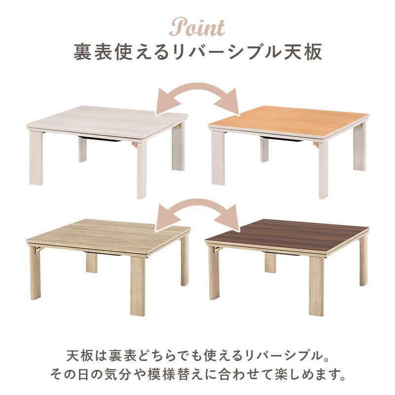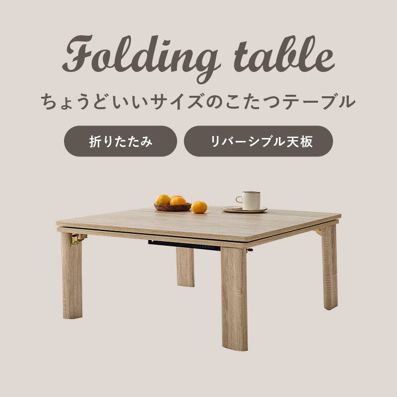 シンプルなデザインで天板リバーシブル、収納に便利な折れ脚コタツ。軽くてかさばらない布団セット