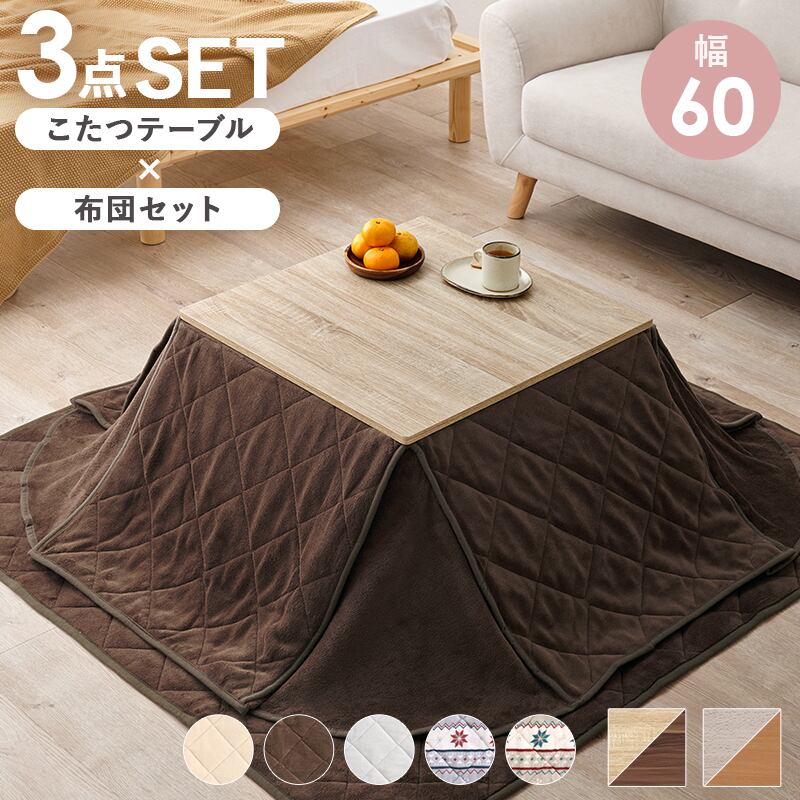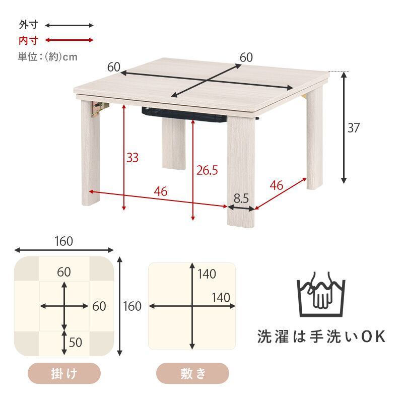 サイズ こたつ:(約)幅60×奥行60×高さ37cm、布団:<掛>(約)160×160cm<敷>(約)140×140cm