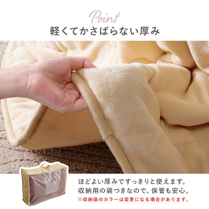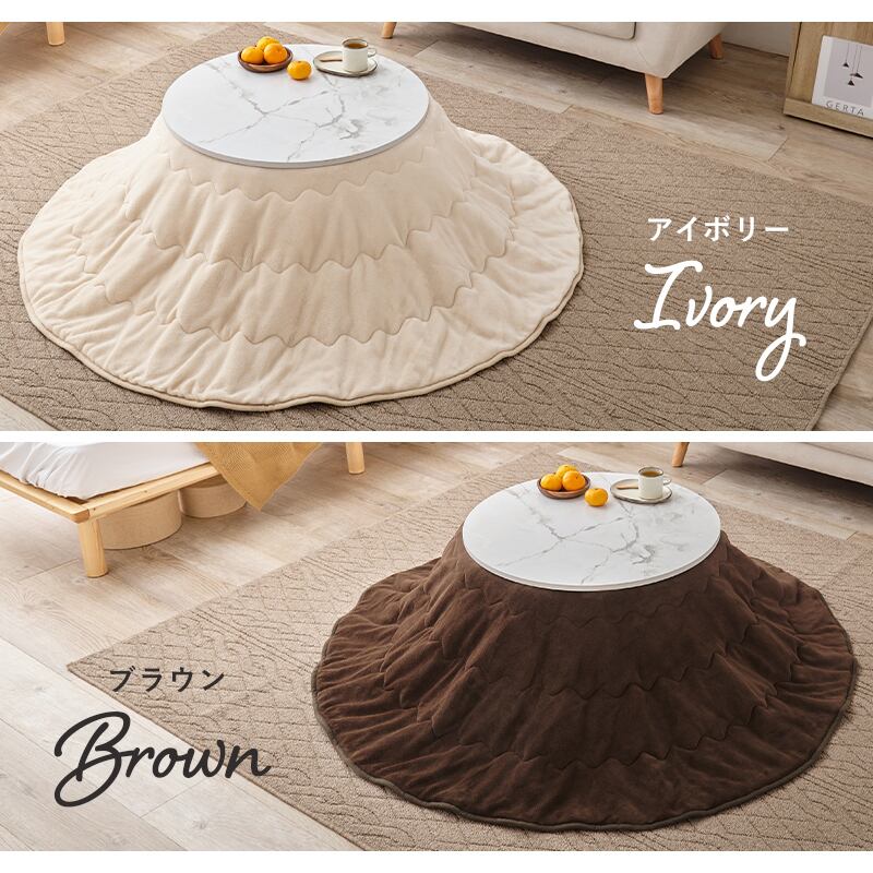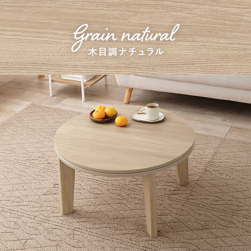 ワンルームに置きやすいコンパクトな丸形天板のおしゃれなこたつです。軽くてかさばらない掛け布団セット