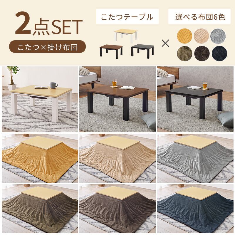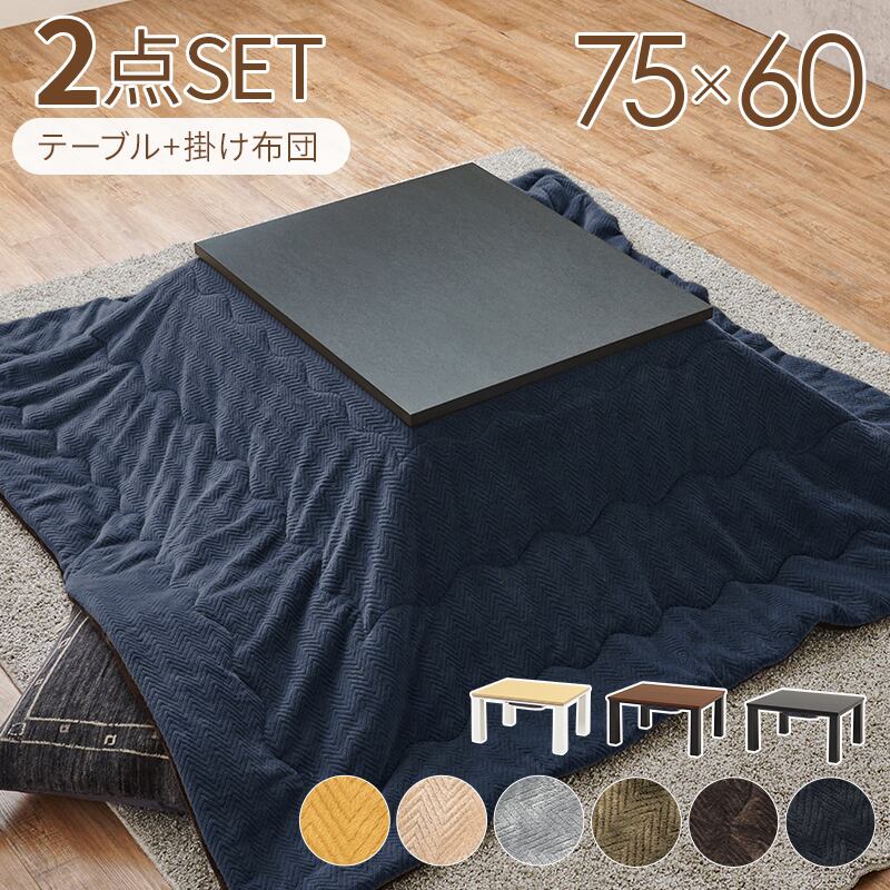 サイズ こたつ:(約)幅75×奥行60×高さ38cm、掛ふとん:(約)195×180cm