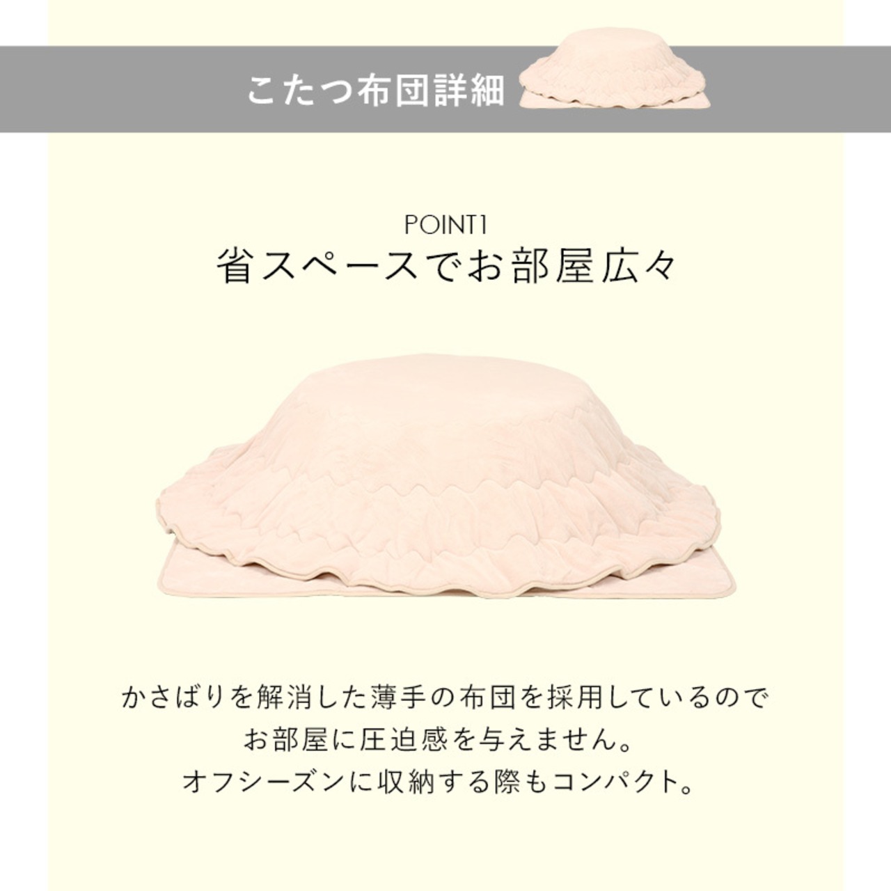 サイズ こたつ:(約)φ80×高さ35.5cm、布団:<掛>(約)φ180cm<敷>(約)140×140cm