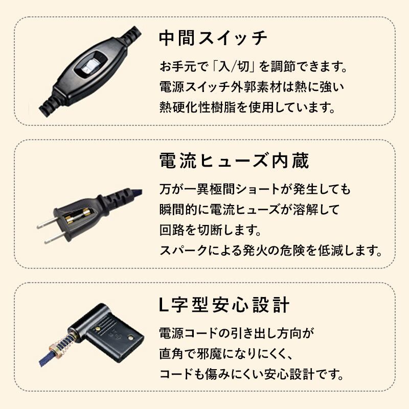 素材 こたつ:<天板>パーチカルボード PVCシート張り <ヒーター>MS-303H 石英管ヒーター(中間スイッチ)、布団:<表地・裏地>ポリエステル(マイクロファイバー)<中綿>ポリエステル