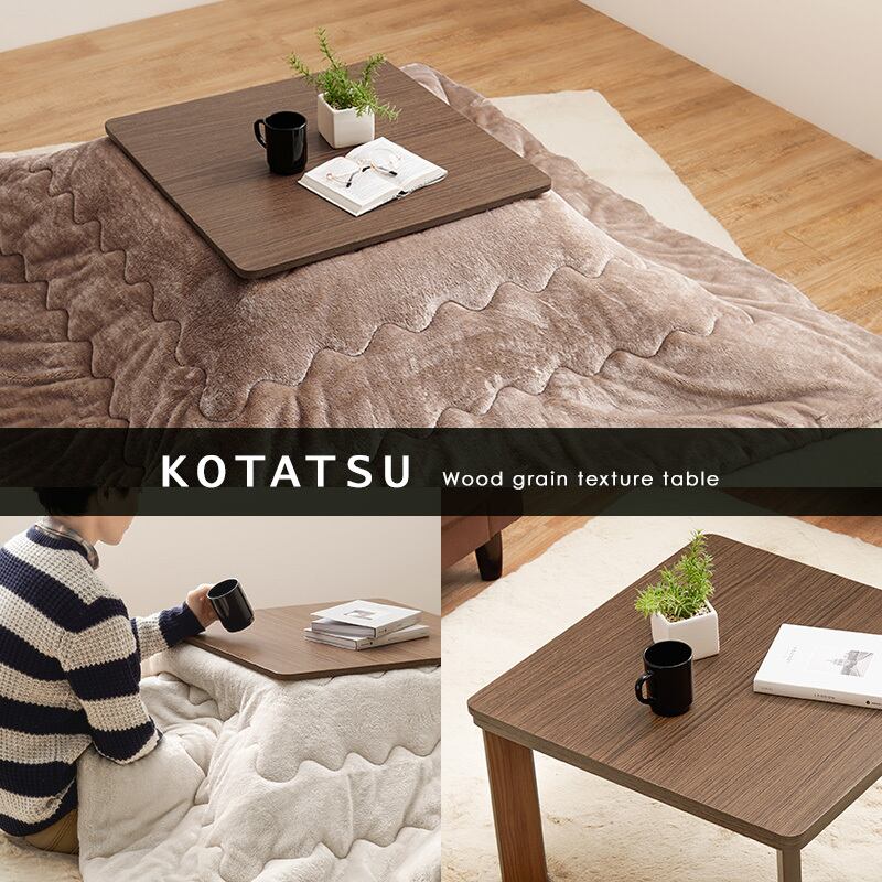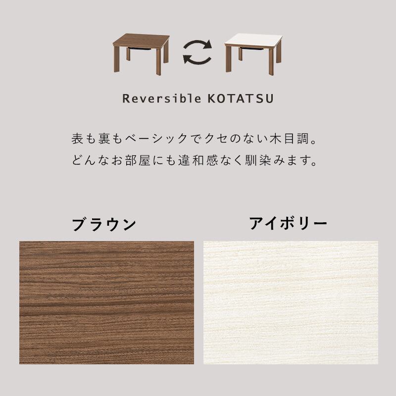 シンプルな木目調のひとり暮らしでも使いやすいコンパクトこたつ。天板は両面使えるリバーシブルタイプ。