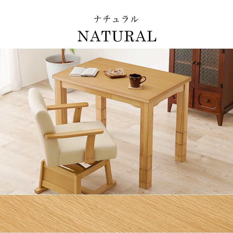 素材 天板:<ダークブラウン>オーク突板<ナチュラル>アッシュ突板、脚部:ラバーウッド、表面加工:UV塗装、ヒーター:MHU-601E(D) 600Wハロゲンヒーター(手元コントローラー付)