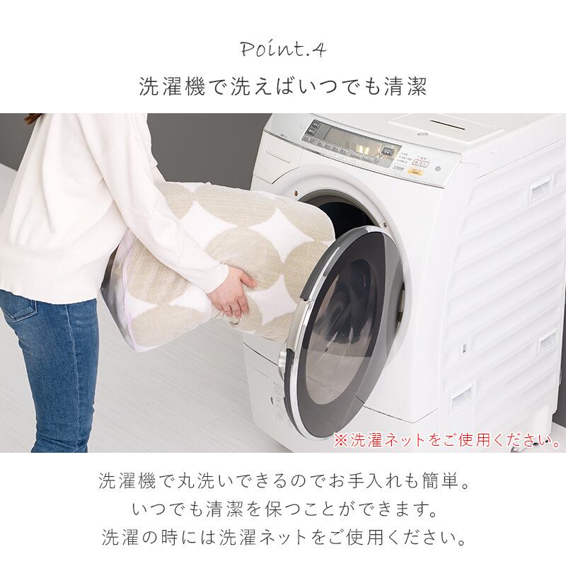 ご家庭の洗濯機で洗えるので、いつでも清潔に使用可能。