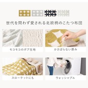 ふんわりとした北欧柄のボア生地が身体をやさしく包み込む、うす掛けこたつ布団です。軽くてかさばらない中綿なしタイプで、お手入れや収納も簡単。ご家庭で洗濯ができるので、清潔に長くご使用いただけます。