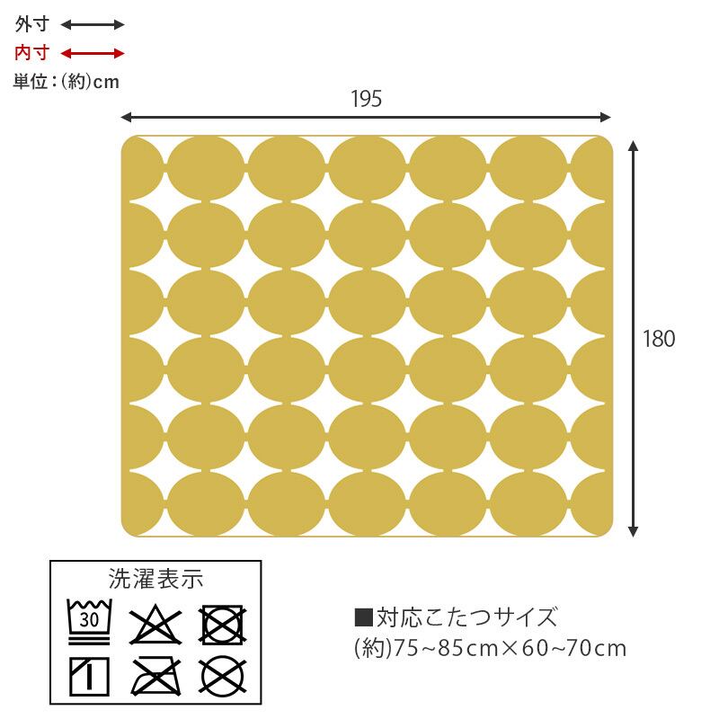 サイズ (約)195×180cm、対応こたつサイズ:(約)幅75~85×奥行60~70cm