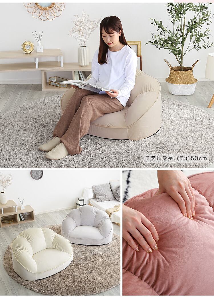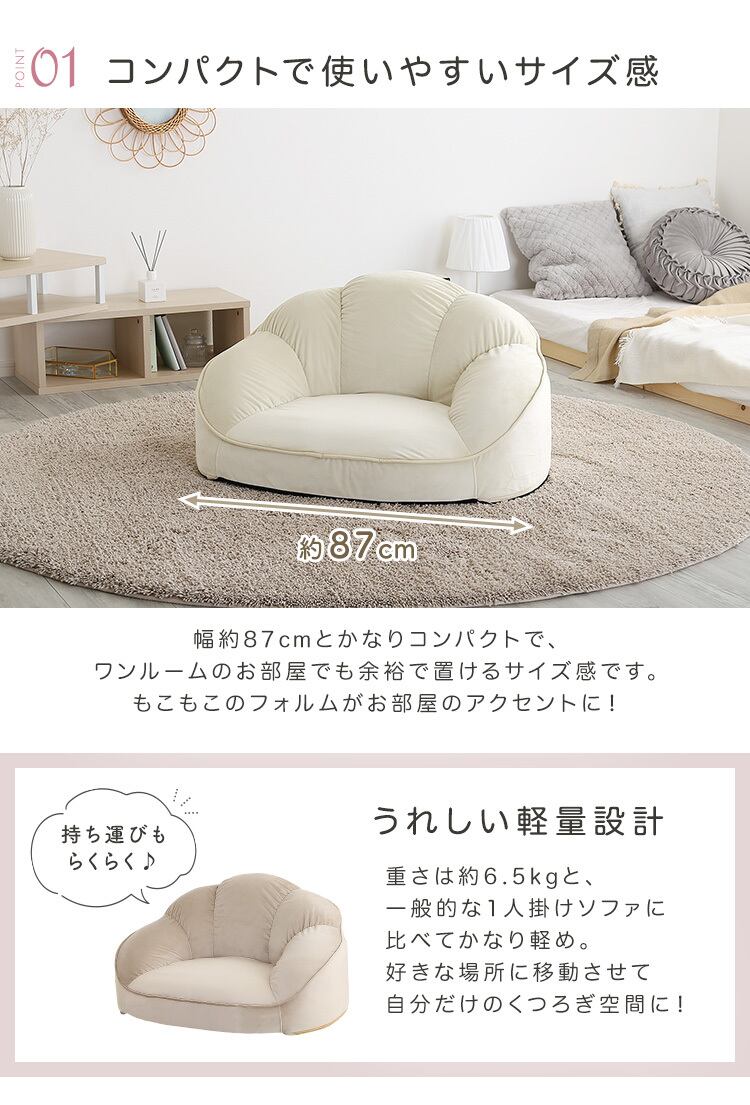 送料無料!ふんわりクロワッサンのようなフォルムが愛らしい、大人かわいい1人掛けローソファ『Ami』。