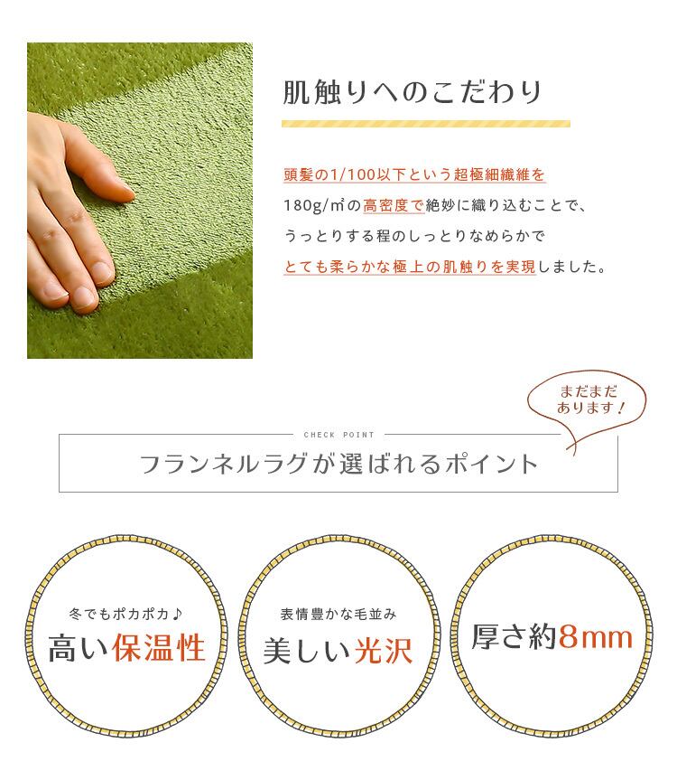 高密度フランネルマイクロファイバー・ラグマットMサイズ(185×185cm)洗えるラグマット|ナルトレア