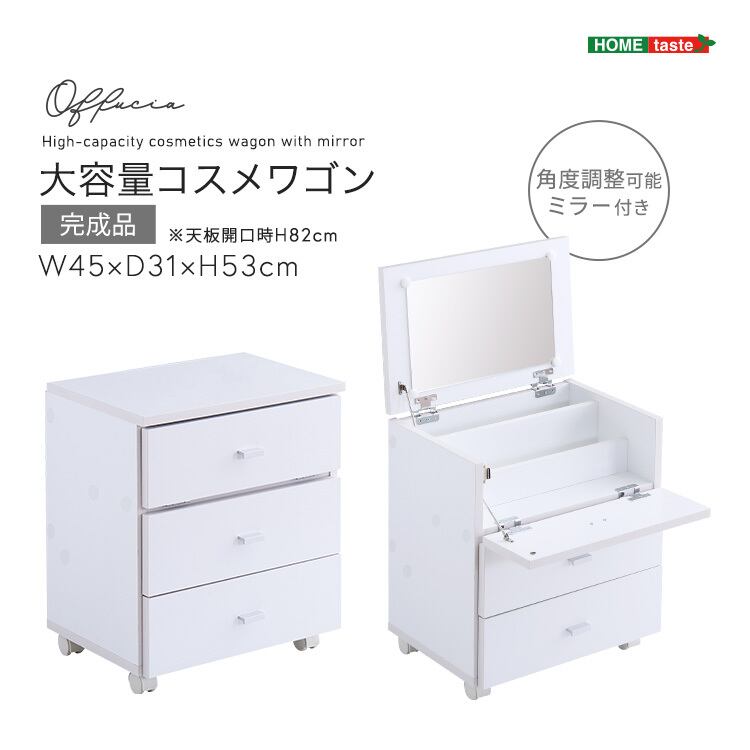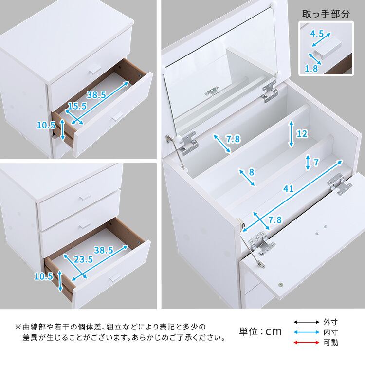 高さのあるスプレー類もしまえる深めの引き出しや、小物をしまうのに便利な2杯の引き出しつき。