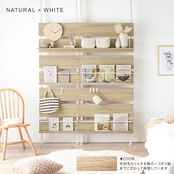 本の表紙をディスプレイできるマガジンラック付きの突っ張り式収納です。棚やフックも付いているのでお好みのレイアウトで使用可能。