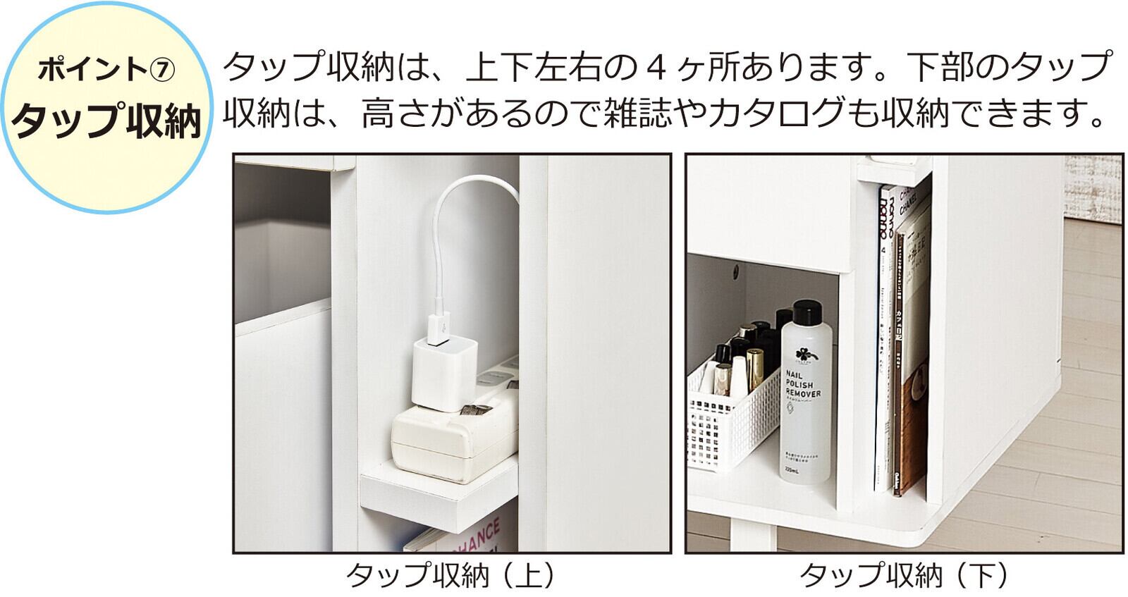 ●下段のタップ収納は高さがあるので雑誌やカタログも収納できます。