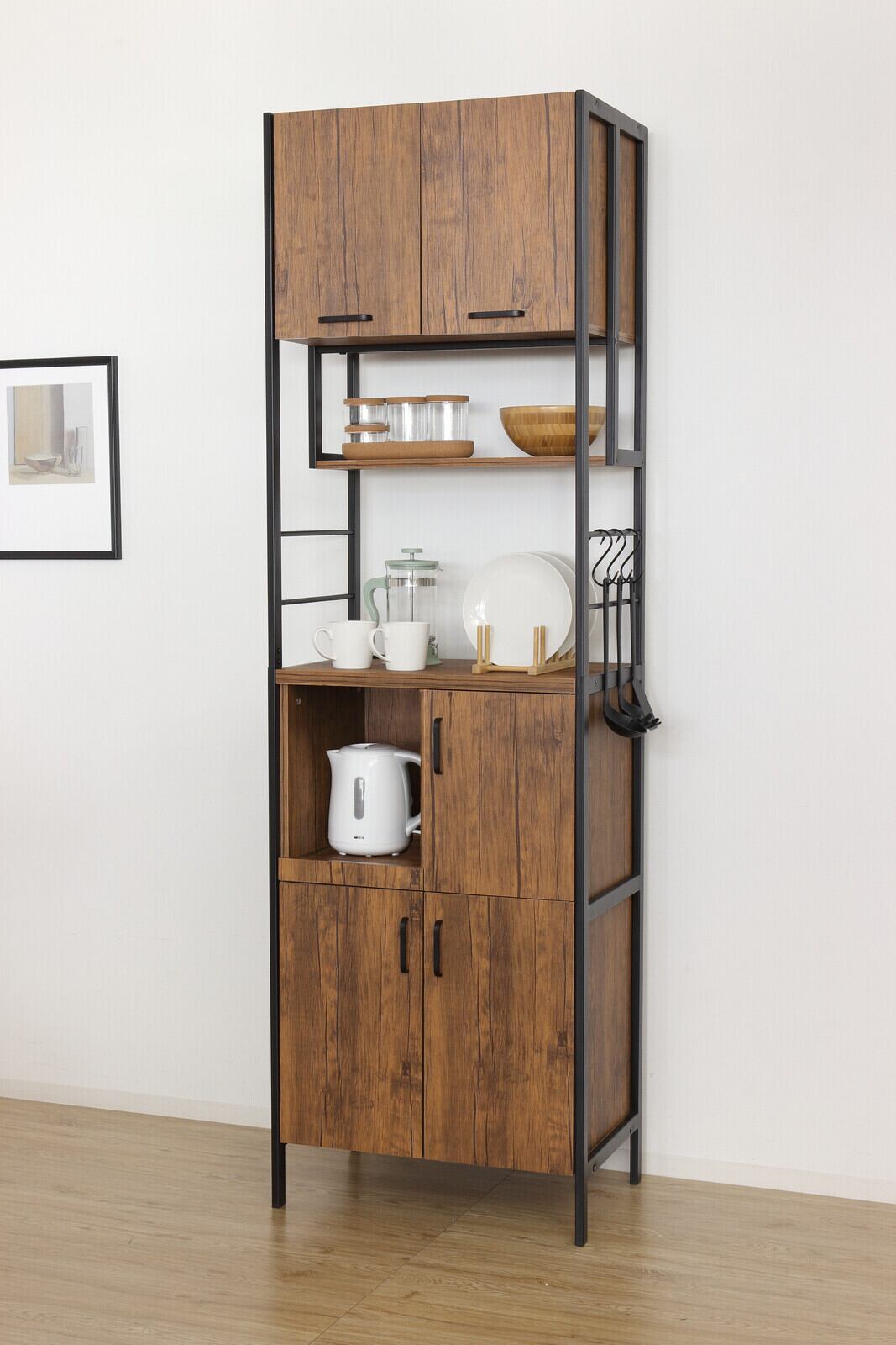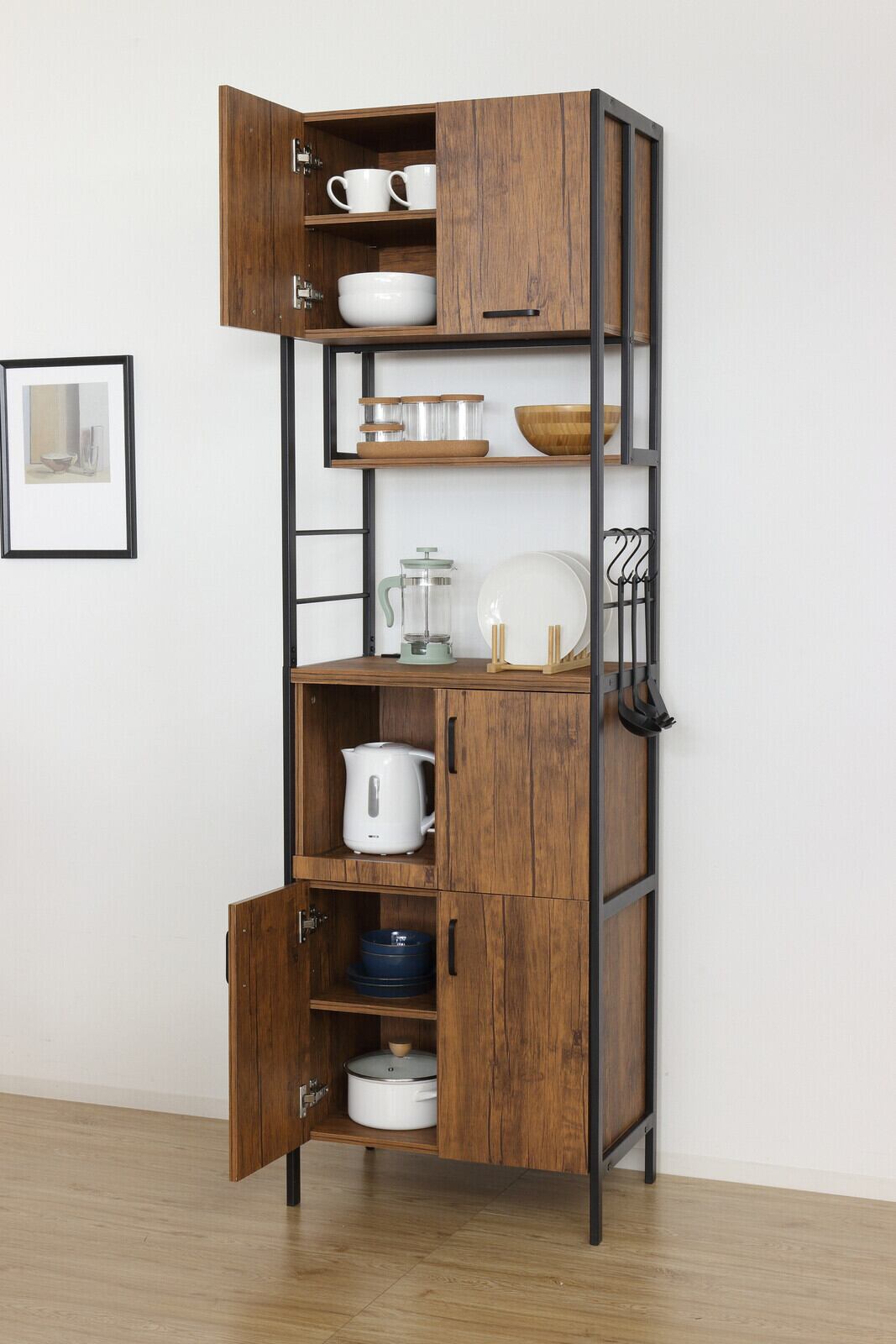 ◆この食器棚は、収納力抜群なスペース設計が特長で、食器類を効率よく整理できます。大切な食器や調理器具を美しく収納し、料理の時間をより楽しいものにしてくれます。