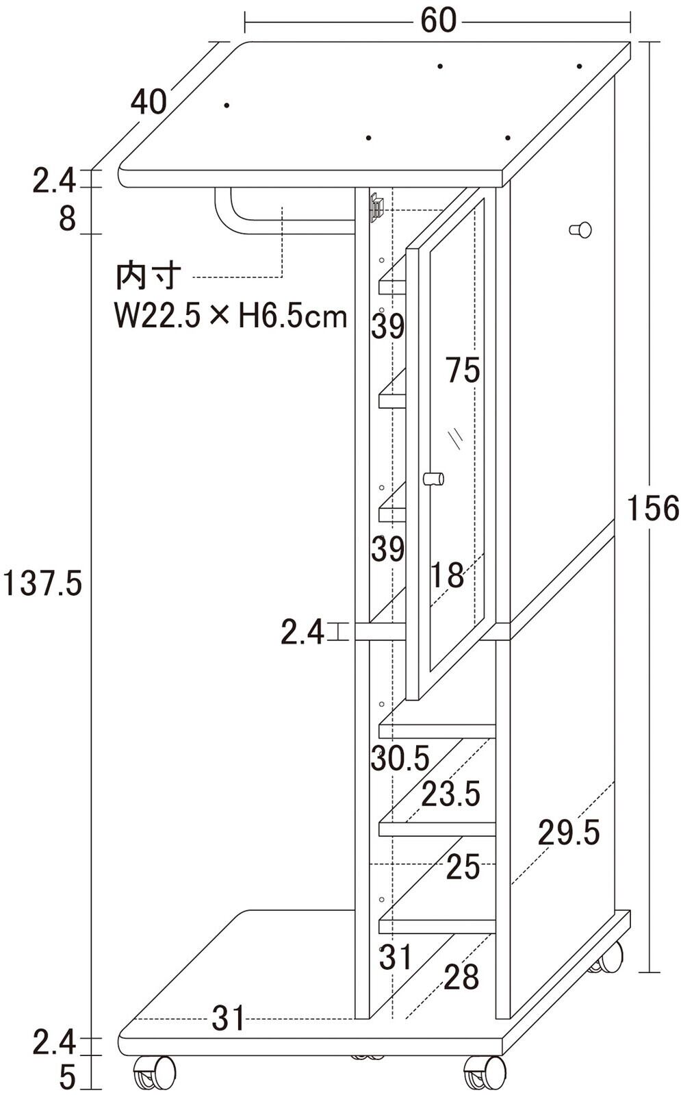 ●高さ約156cmなので小柄な女性でも天板上へ収納ボックスやカゴが置きやすい。
