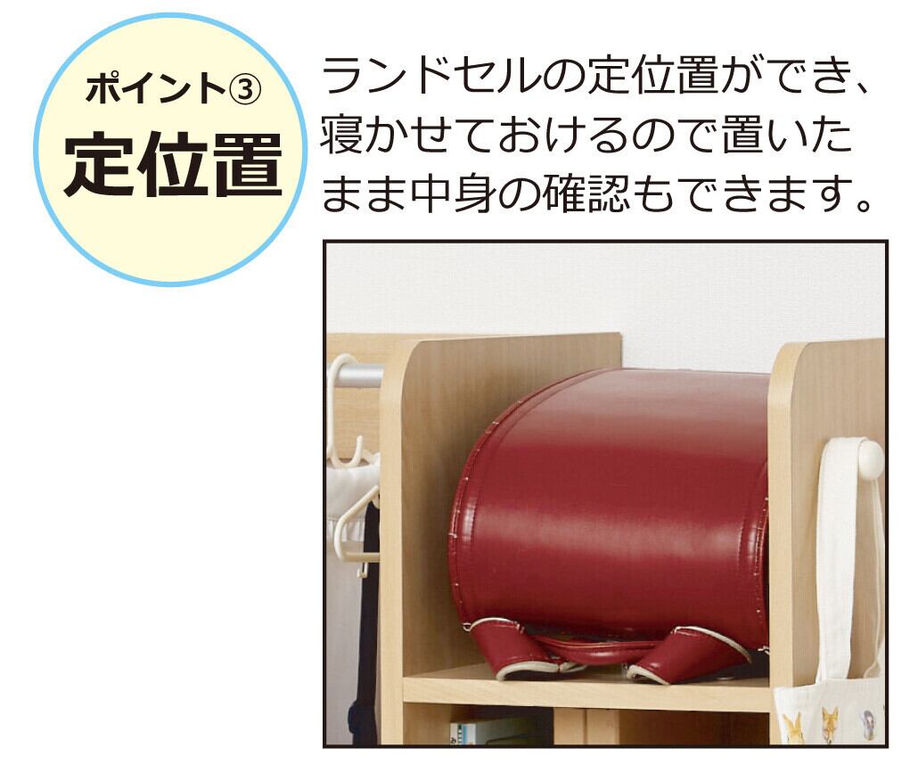 ●ランドセルの定位置ができ、寝かせて置けるので中身の確認が楽。