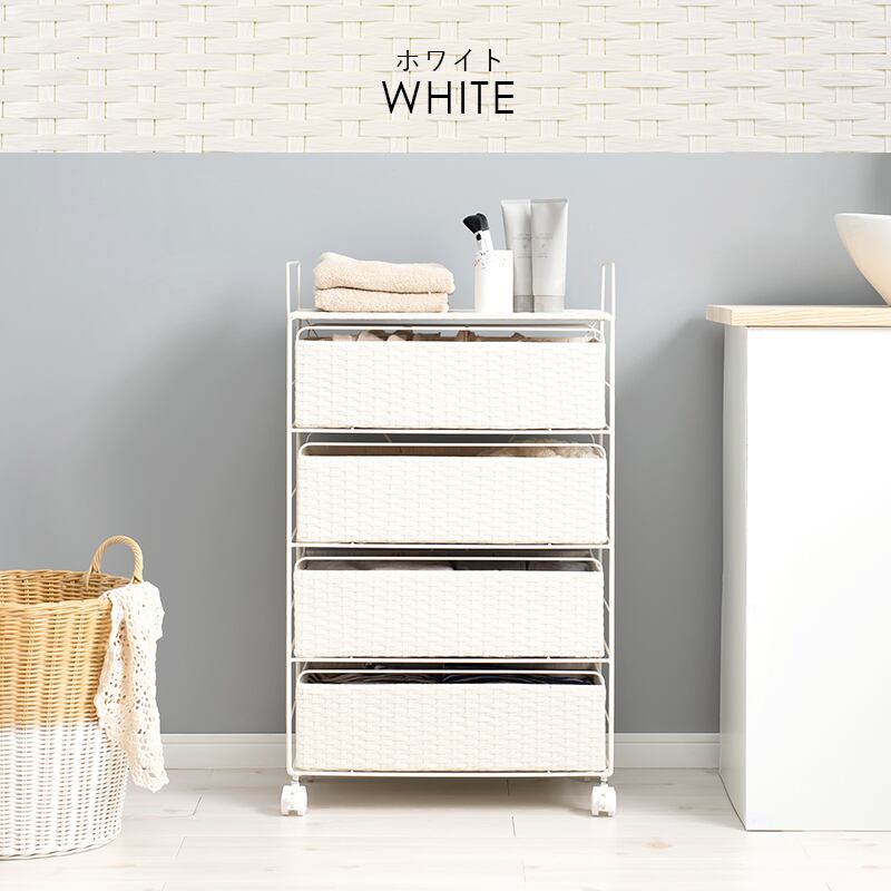 洗濯物の収納や片付けを効率化する、RAN-2436のランドリー収納。取っ手を持って引き出しを簡単に運ぶことができるので、洗濯物を運ぶのもラクチンです。ダークグレー、グレー、ホワイトの3色展開で、お部屋に合わせて選べます。