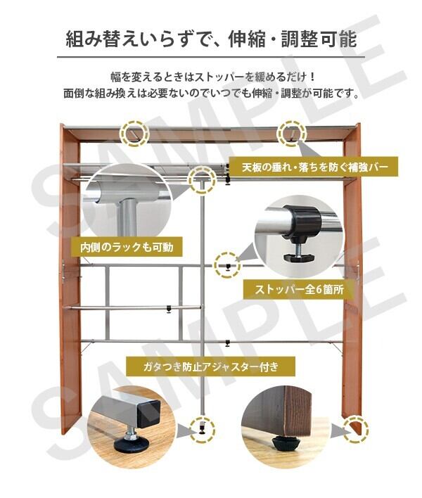 - サイズ:幅96~160cm×奥行き45cm×高さ180cm(調整可能)