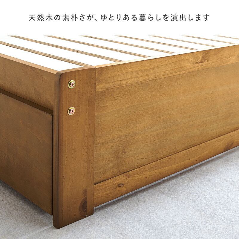 引出し付きのシングルベッド、MB-5163Sは収納力抜群で収納スペースの少ないお部屋に最適です。しっかりとした木製のすのこベッドなので、安定感があり長くご利用いただけます。さらに、宮棚が付いているので、スマホやアイテムを簡単に手元に置くことができます。