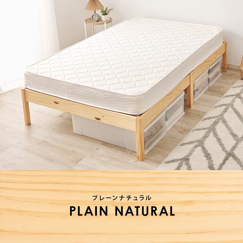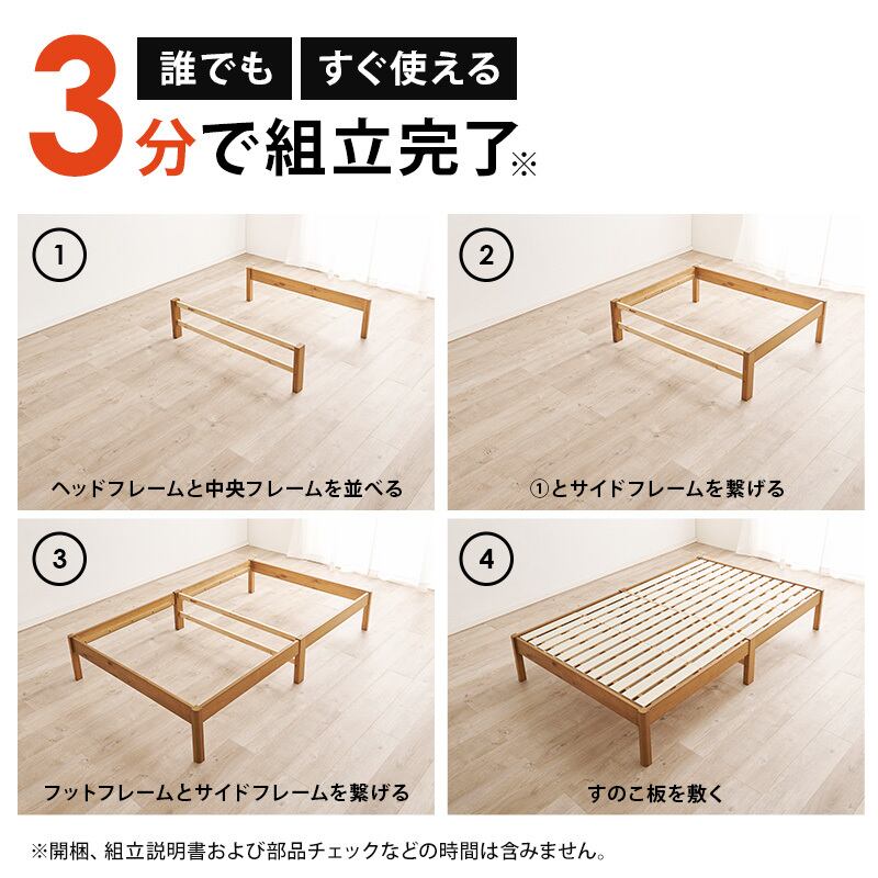 ネジなし、工具不要で簡単組立。シンプルなデザインのセミダブルベッド。独立したバネが体型に合わせて沈みこむポケットコイルマットレスセット