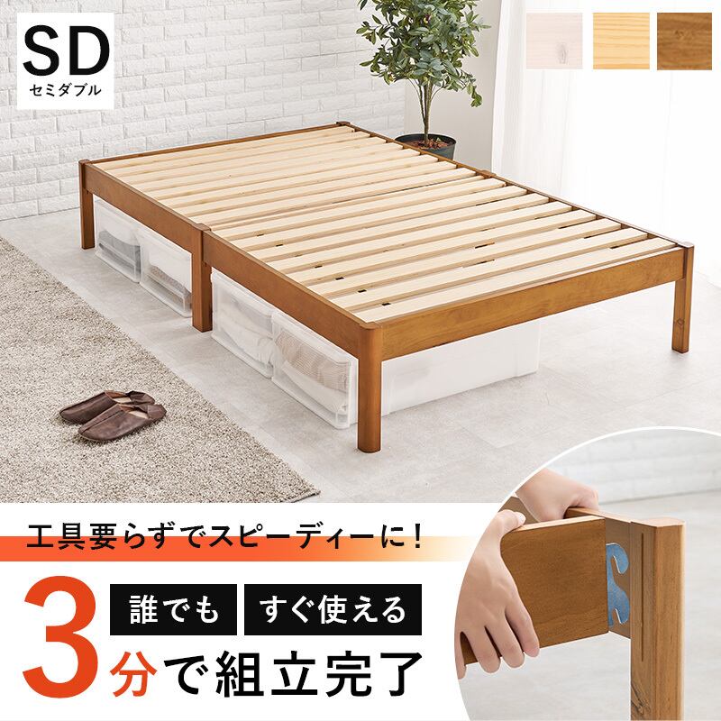 ネジなし、工具不要で簡単組立。宮棚がなくスッキリシンプルなデザインのセミダブルベッド。