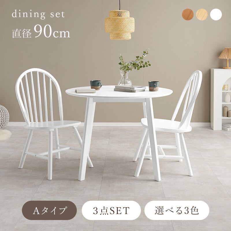 人気のウィンザーチェアと円形テーブルでカフェのような雰囲気になるダイニング3点セット