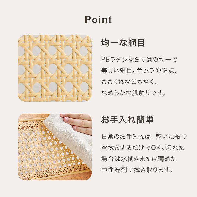 ◆背もたれのラタン調かごめ編みは、視覚的にも手触り的にも優れた感じを与え、長時間座っていても疲れにくい設計です。家族や友人との会話を楽しむひとときに、ぜひご利用ください。