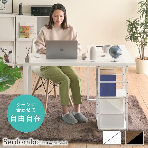 天板が回転し、様々なレイアウトが楽しめる”Serdorabo”。対面スタイル、コンパクトスタイル、ワイドスタイルなど使い方はユーザー次第!回転天板下には薄型回転盤が付いているので動きもスムーズです。