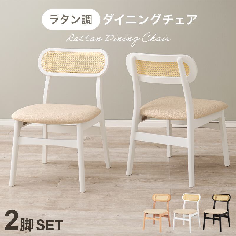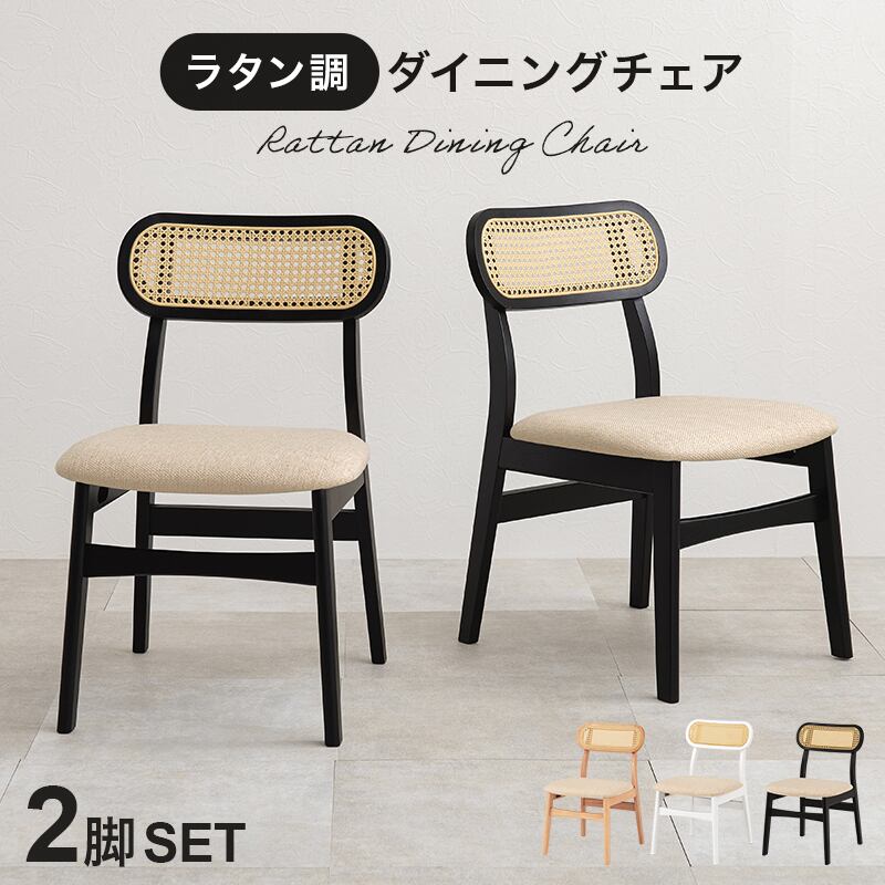 あらゆるシーンで活躍する「背もたれのラタン調かごめ編みが特徴的なチェア2脚組」で、毎日のリラックスタイムを華やかに彩りましょう!
