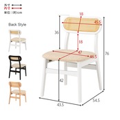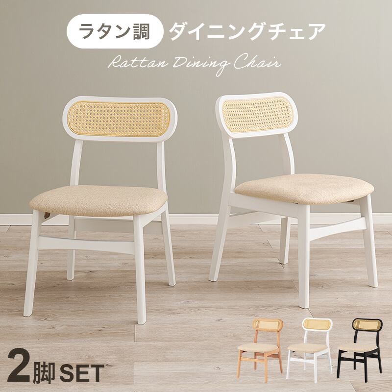 背もたれのラタン調かごめ編みが特徴的なかわいいデザイン。使いやすさにもこだわったチェア2脚組