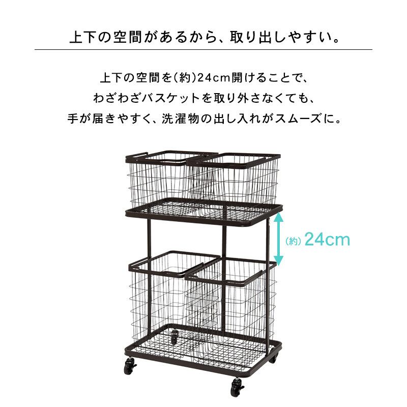 ◆このランドリーワゴンは、大容量のバスケットを備えており、持ち運びが簡単なので、移動も楽々。面倒な洗濯物の仕分けがスムーズに行え、効率的な家事をサポートします。バスケットは取り外し可能なので、洗濯機への移動も快適です。