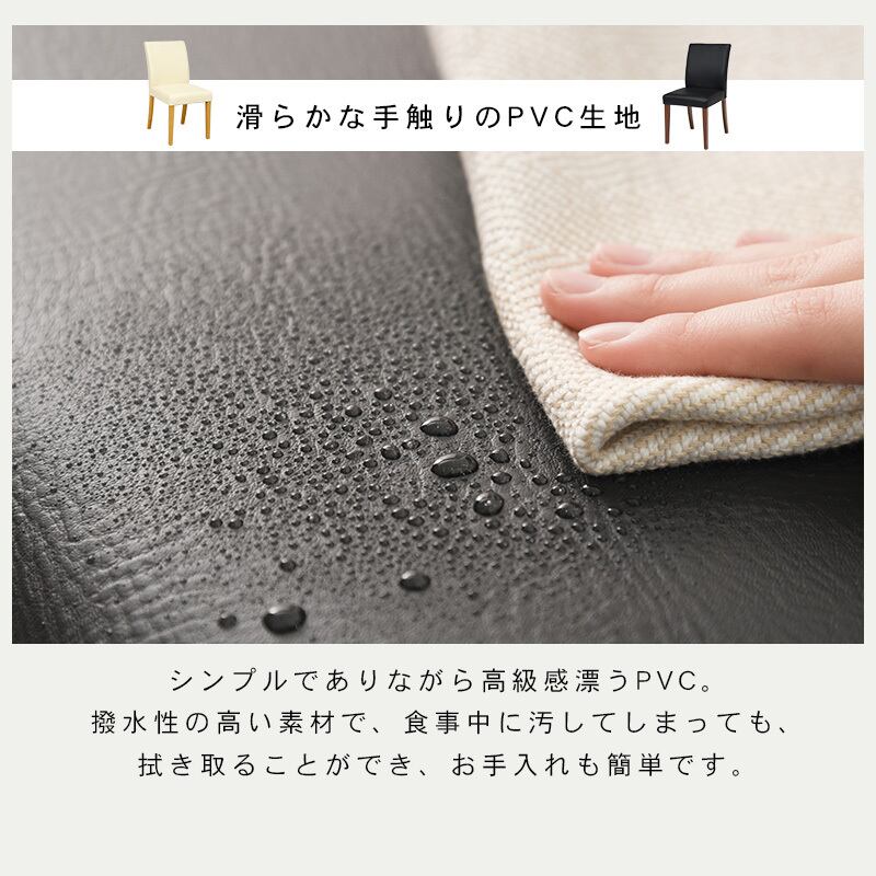 ラバーウッドの主材と選べる張地が特徴で、耐久性抜群。ブラックやアイボリーの合成皮革から、ブラウンやグリーンのポリエステル素材まで、お部屋のスタイルに合わせて選べます。
