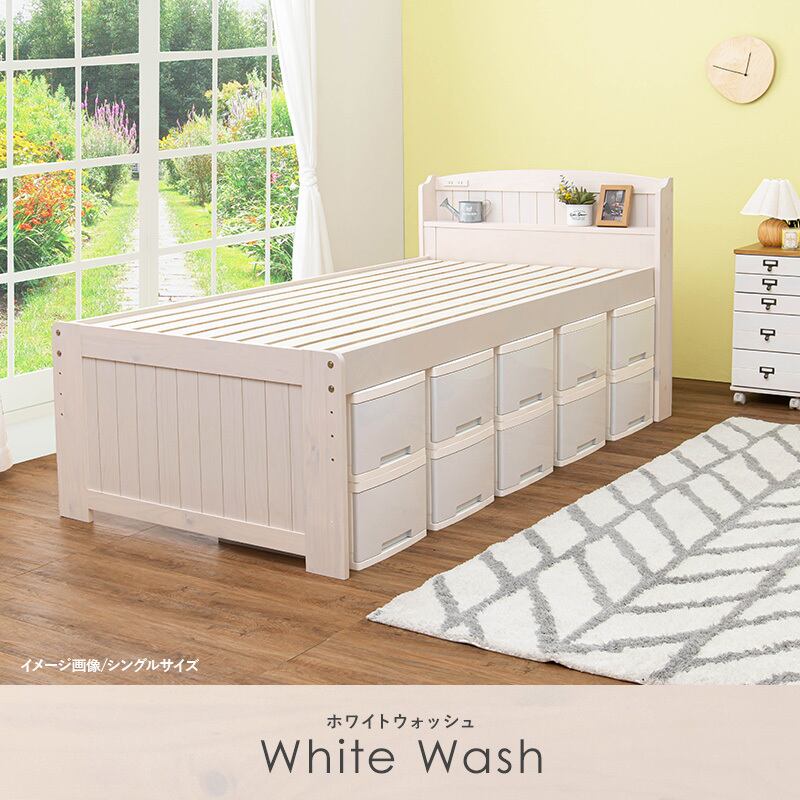 ## 商品名:床面高さが4段階に変えられ、床面下に大容量収納が可能。頑丈な造りの天然木すのこベッド