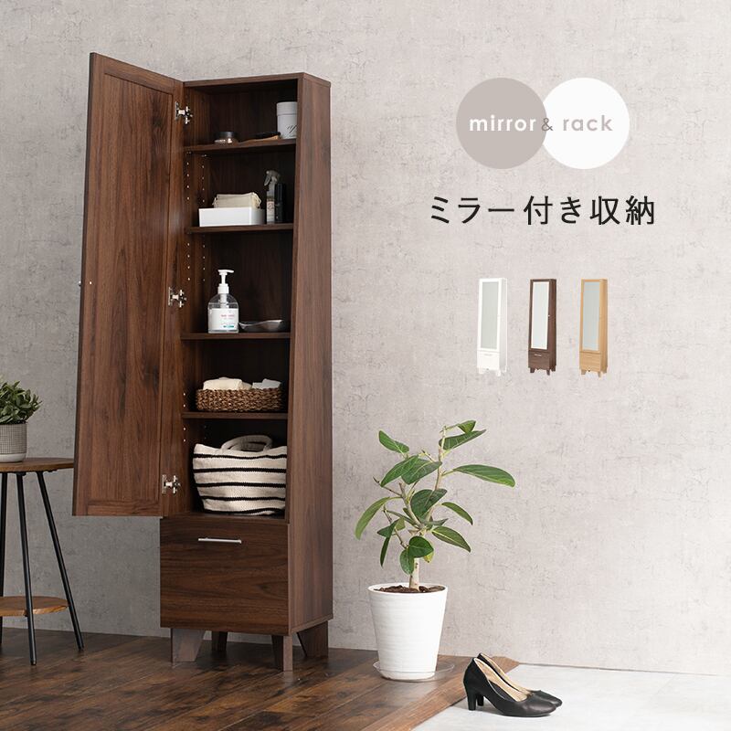 限られたスペースを有効活用する『ミラー付き収納庫 RD-1831』が登場です!スリムな幅でデザインされたこの収納庫は、狭い場所にもぴったりフィットしながら、充実の収納力を誇ります。扉がミラーになっているため、お出かけ前の身支度にも便利です。おしゃれなインテリアに一役買うスタイリッシュなデザインで、どんなお部屋にも調和します。