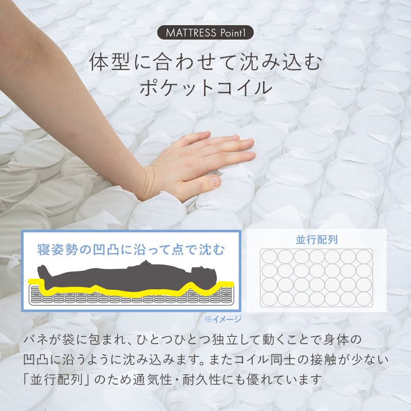 サイズ ベッド:(約)幅97×奥行208.5×高さ61.5×床面高24.5cm、マットレス:(約)幅97×奥行195×高さ19cm
