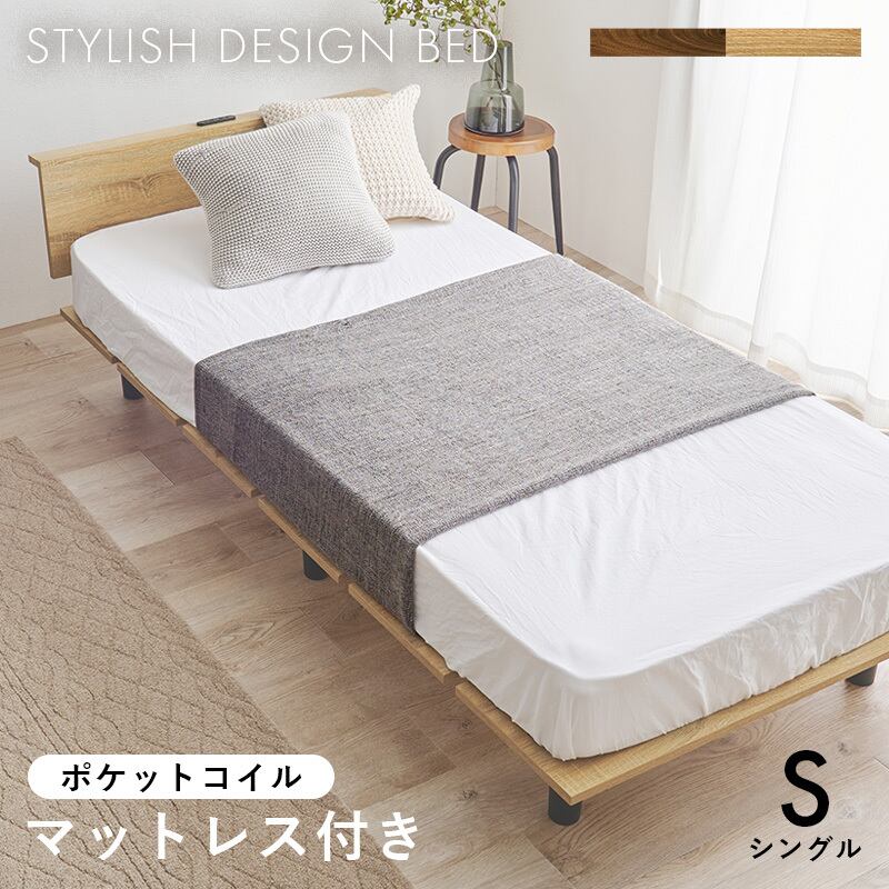 シンプルな木目のパネルとおしゃれな黒い脚が融合した、スタイリッシュな『マットレス付シングルベッド KB-3064S3102』が登場です!モダンでありながら、温かみのあるデザインは様々なインテリアにマッチし、安らぎの空間を演出します。ボンネルコイルマットレスが付属しており、快適な寝心地を確保。質の高いリラックスタイムをお約束します。