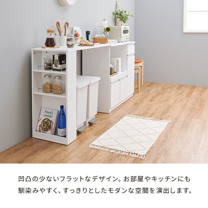 素材 主材:プリント紙化粧パーティクルボード、天板・スライド棚:合成樹脂化粧パーティクルボード、取手:スチール