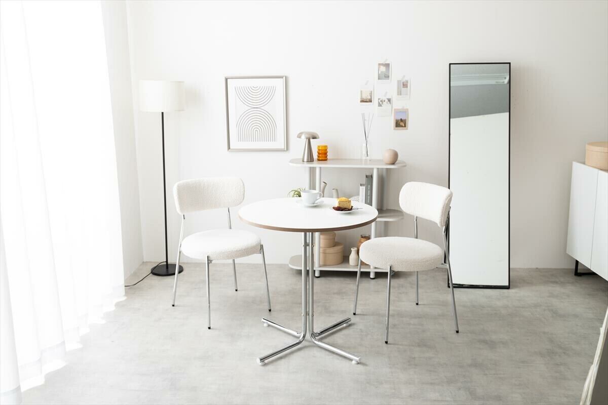 洗練されたデザインの『Stjerne(スチャーナ)』ダイニング3点セット。独創的な脚のシルエットが美しい丸型カフェテーブルと、ブークレ生地がアクセントのチェア2脚は、置くだけでお部屋をホテルライクな空間に演出。実用性が高い天板サイズや座り心地の良さにもこだわりました。特別感のある空間でゆったり心地よい毎日をお楽しみください。