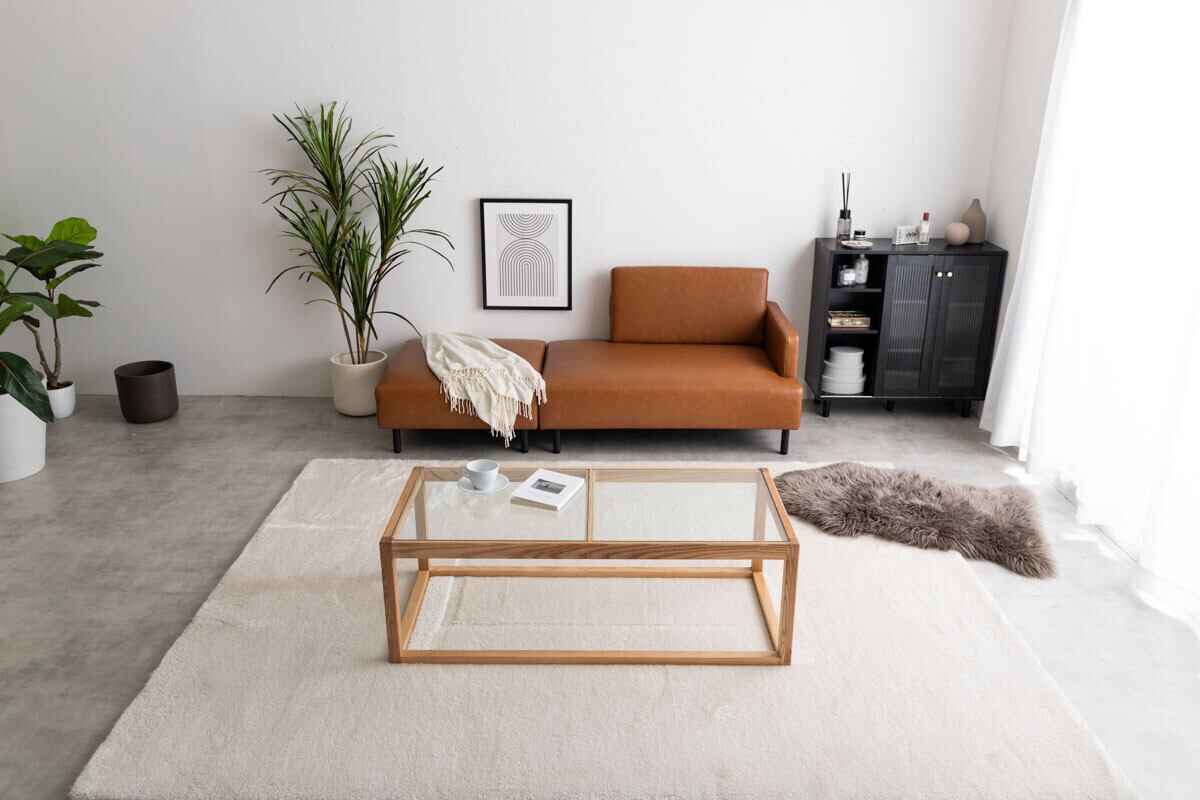 ソファとオットマンの2点セットで、お部屋やお好みの形に合わせて自由にレイアウトしていただけます。また、ひじ掛けが邪魔にならない片側アームレスタイプ。
