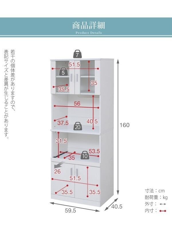 - 高さ160cmの優れた収納力で、上段にはおしゃれな食器を、下段には頻繁に使う家電を収納できます。