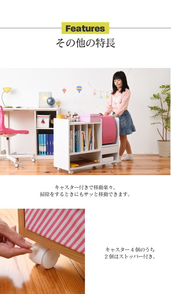ンドセルラック カウンター下 多機能 幅80 高さ62.5 奥行30 ランドセル 収納 キャスター付き 木製 本棚 子供 スリム ラック 絵本ラック キッズ リビング