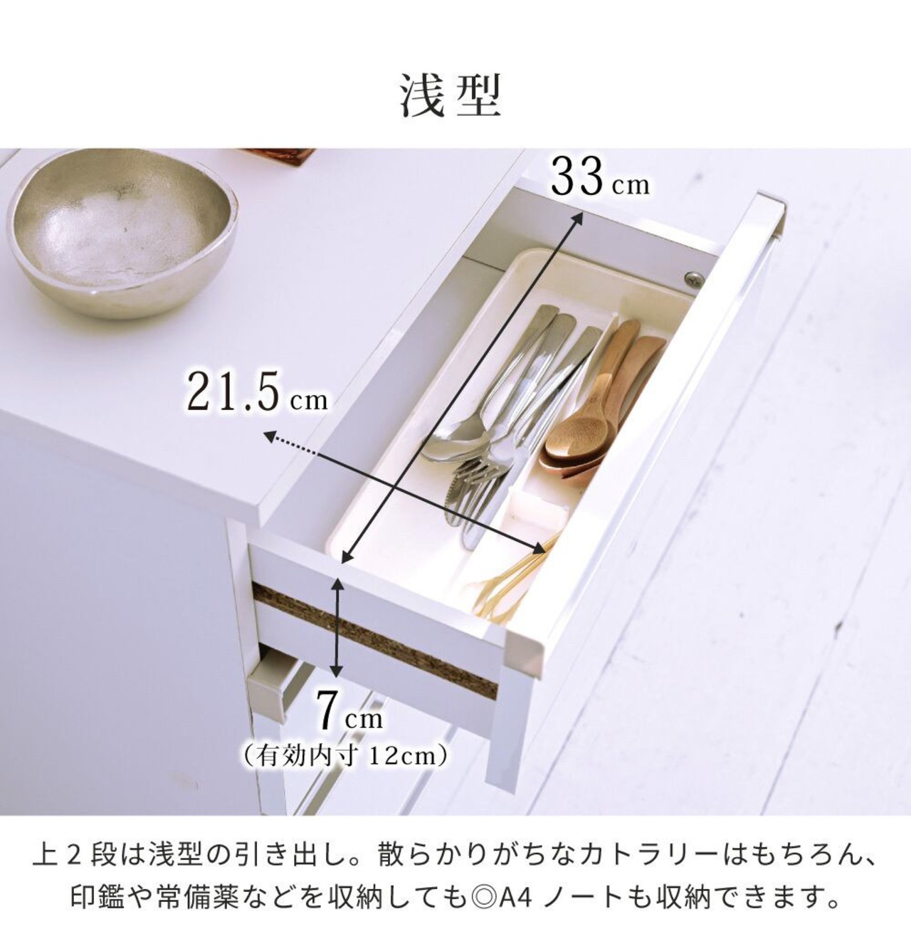 リビングチェスト 白 キッチンチェスト カウンター下収納 コンパクト チェスト サイドチェスト 引き出し 収納 木製 スリム ホワイト 薄型 鏡面