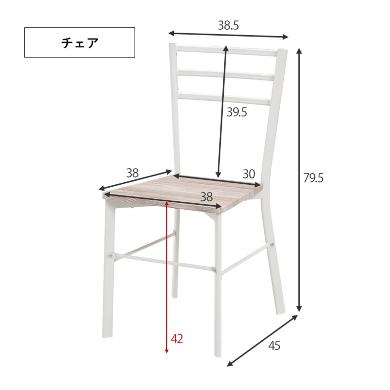 サイズ デスク:(約)幅80×奥行45×高さ72cm、チェア:(約)幅38.5×奥行45×高さ79.5×座面高42cm、ラック:(約)幅75×奥行30×高さ72cm