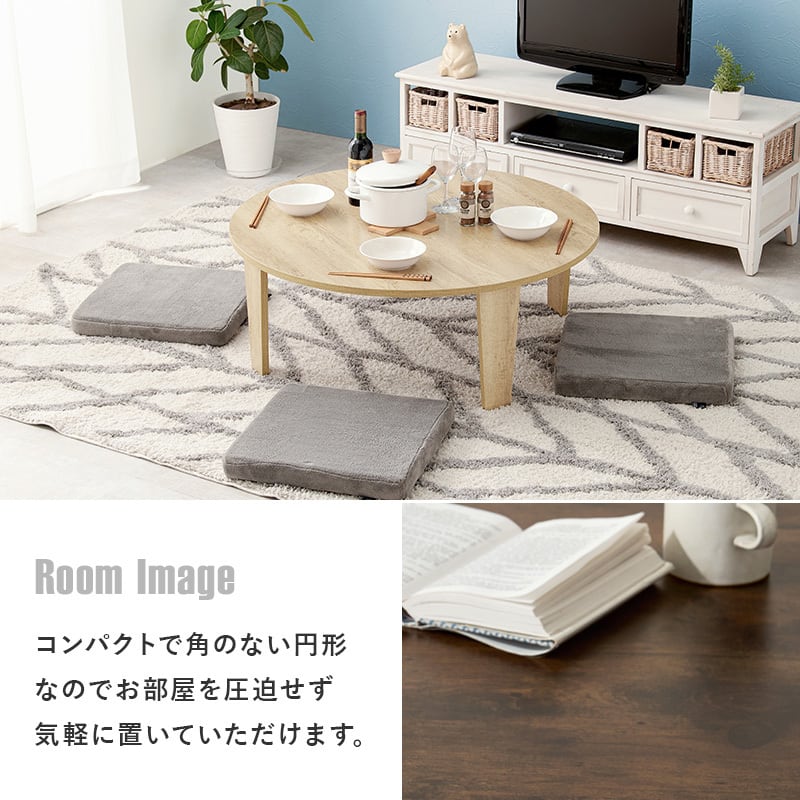 「折れ脚テーブル MT-6869」は、まるで天然木のような古木調の色合いと木目感にこだわった円形テーブルです!折りたたみ機能がついているため、使用しない時はコンパクトに収納でき、スペースを有効活用できます。