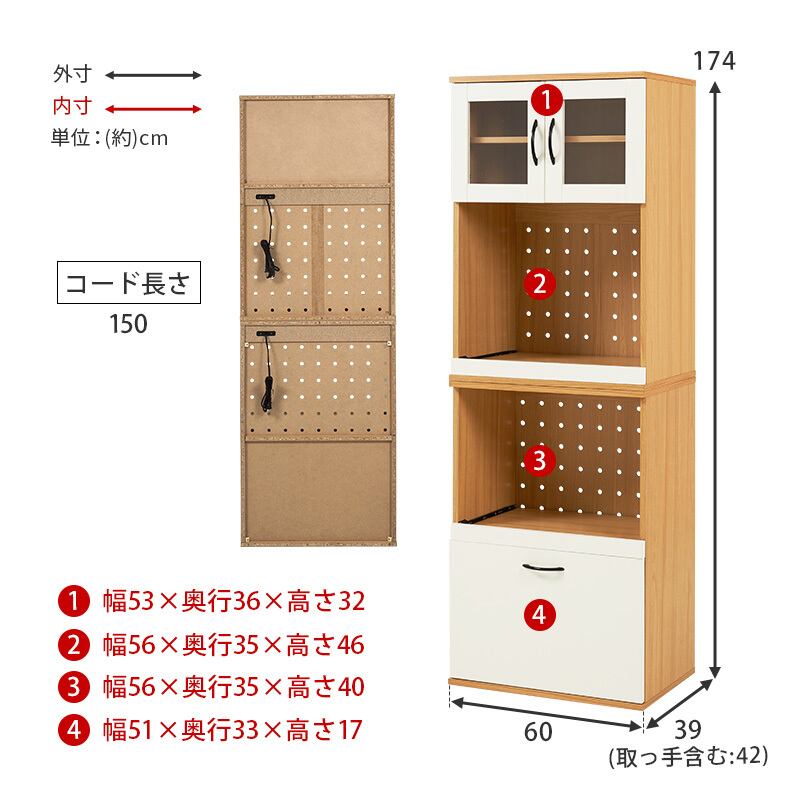 サイズ (約)幅60×奥行42(取手含む)×高さ174cm