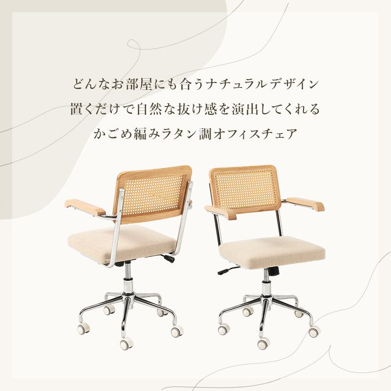 心地よいナチュラルテイストを演出する、キャスター付チェア LHC-4475です!置くだけでお部屋に自然な抜け感をもたらし、穏やかな雰囲気をプラスします。リモートワークや勉強時にも最適なアイテムで、快適な作業環境を提供します!
