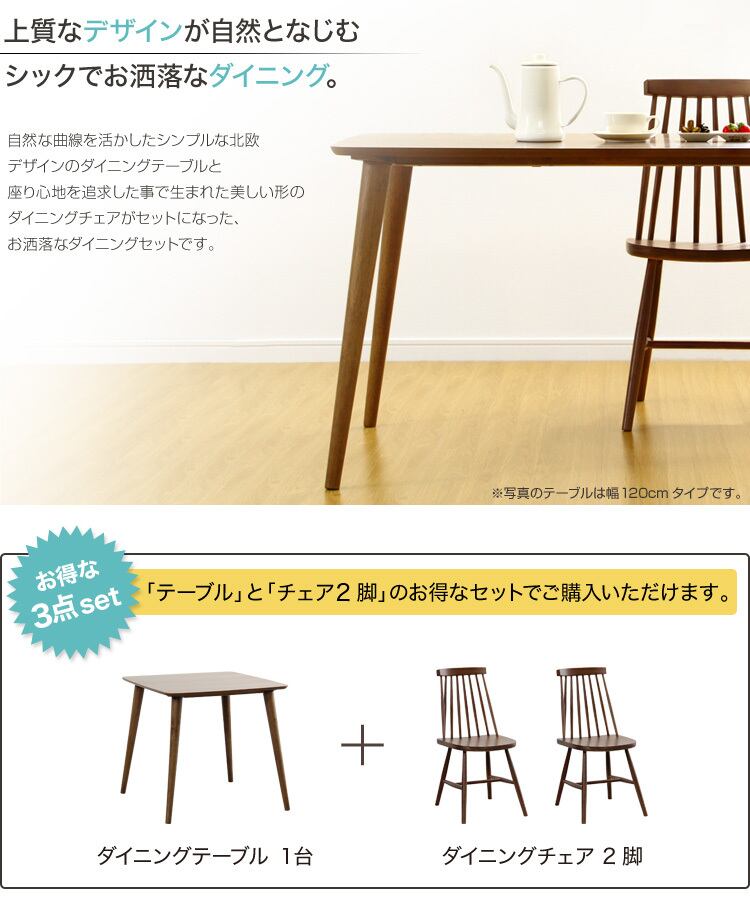 ダイニングセット【Egill-エギル-】3点セット(コムバックチェアタイプ)ウオールナット