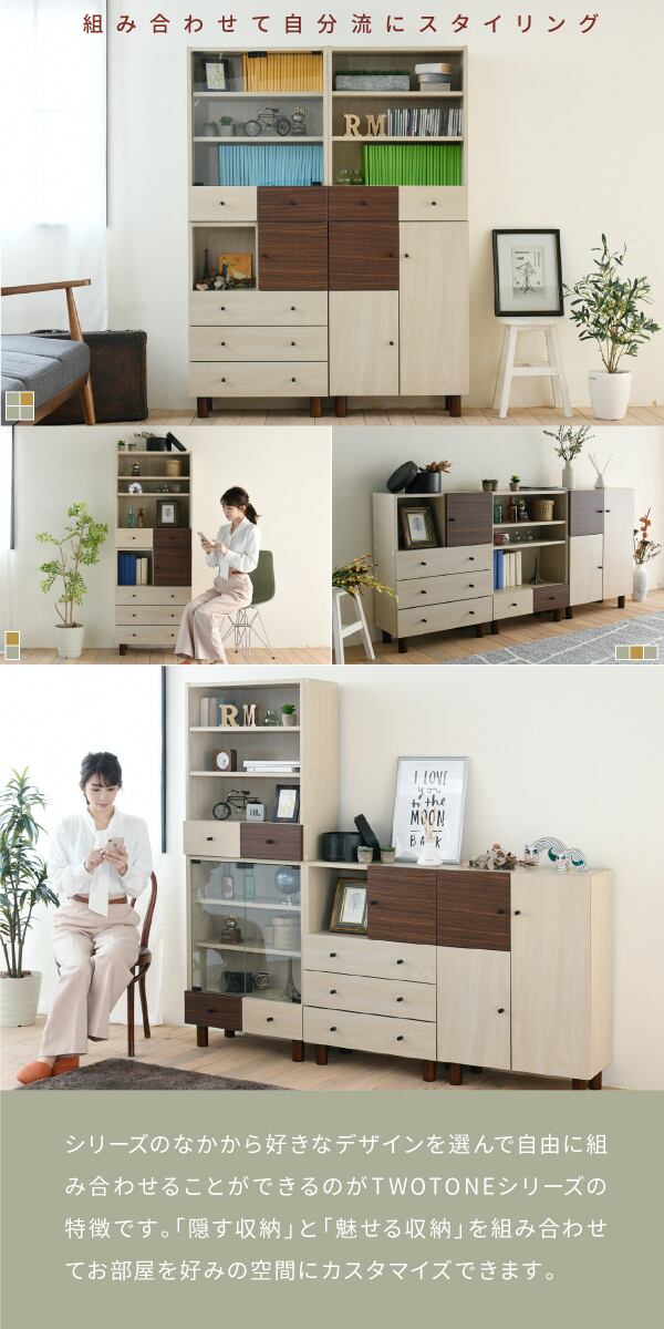 リビングに置いてお気に入りの雑貨を見せる収納にしたり、書斎で本を整理したり、様々な用途で活躍します。脚付き設計により、床の掃除も簡単!さらに、引き出し収納で小物もすっきり片付けられるため、実用性も抜群です。お洒落な収納家具で、あなたの生活空間を一層おしゃれに演出します!。